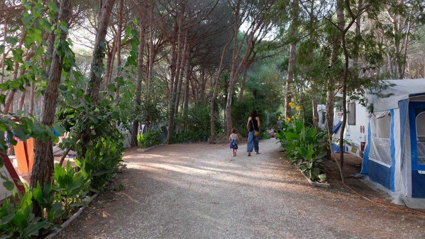 Selema is a pretty site with a tropical feel and direct beach access. There is considerable shade from pine and eucalyptus, although access to many pitches is restricted by tall, bending trees. Flowers and cacti have been used to provide landscaping features and unusually there are well watered, grassy areas. There are 200 large pitches of grass and sand, well shaded with shallow terracing. The site runs along the Pineta coast with its long white sandy beaches and vibrant blue water and has a wide river flowing along the other side. Some pitches are near the path to the beach and a few have views of the distant mountains. Staff speak English and are very helpful.