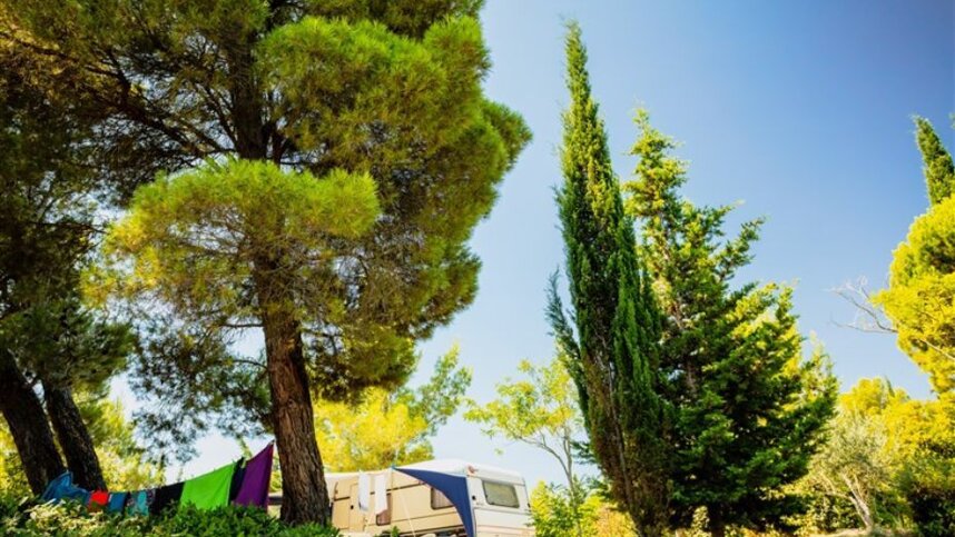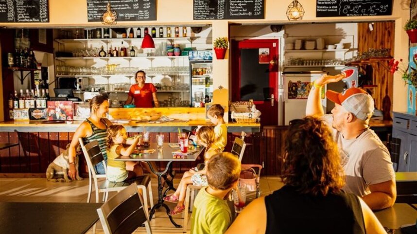 Three fully equipped sanitary blocks, one with facilities for babies, are a little dated. Not all blocks are opened outside high season. Outdoor heated swimming pool (1/6-30/9). Washing machine. Motorhome services. Gas. Pleasant bar and restaurant providing decently priced hot food (July/Aug). Fresh vegetables can be sampled from the garden (small charge). Shop, restaurant and takeaway (Seasonal). Communal barbecue (private barbecues are not permitted). Torches necessary. Caravan storage. WiFi throughout (free).