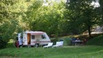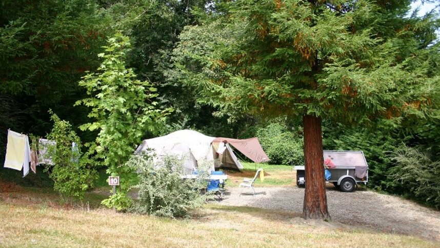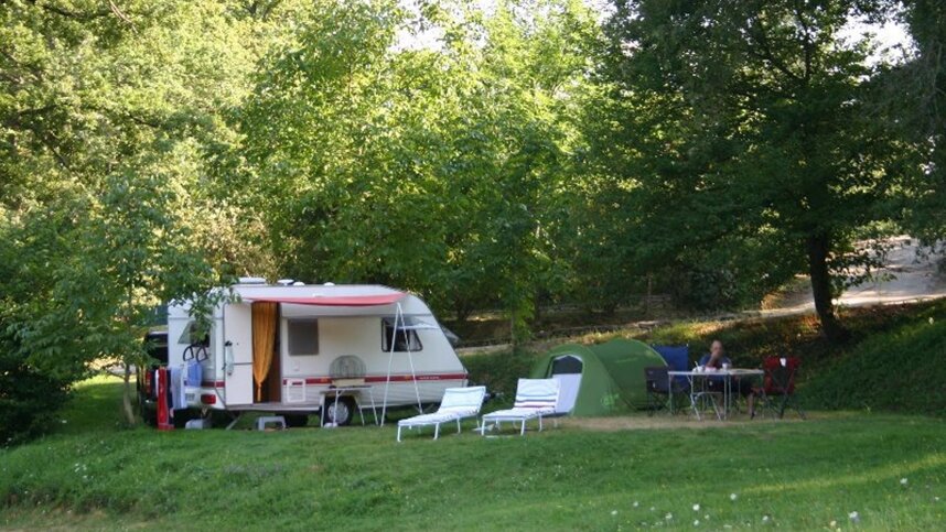 A beautiful site set in ten hectares of gentle hillside and run by Corinne and Patrick, a hardworking and very friendly French couple. There are 67 spacious pitches, 46 for touring, all with electricity (5/10A). Most are on well drained grass with shade and privacy, some are on hardstanding and there is additional hardstanding for motorhomes in wet weather.