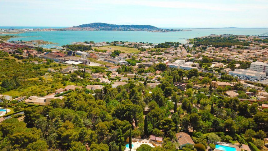 From A9, exit Sète, follow N800 to Balaruc-le-Vieux, first roundabout (D2), second roundabout both following Balaruc-les-Bains/Sète. After 50 m. right for Balaruc-les-Bains, immediately left across road, double back down it (50 m). Immediately right, follow Chemin du Mas du Padre.