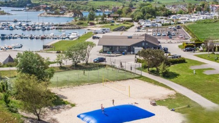 Sokn Camping is a peaceful and well maintained campsite located on the island of Sokn in Bru, Norway, approximately 15 minutes by car from the vibrant city of Stavanger. On site there are 59 touring pitches of which have 10Amp electric hook up points available. The hardstanding pitches are located along the harbour and beach which are suitable for larger vehicles. Pitches at the end of the Harbour are smaller in size but have great sea views. The campsites offers brand new for 2025 Sanitary facilities with hot showers, a modern laundry and family room. There is also a campers’ kitchen ‘Gapahuk’ with seating and tables, providing a covered area for dining if the weather is poor. A small shop at reception provides the essentials in high season. If you don't want to cook whilst staying on site the campsite has its own restaurant offering a variety of different dishes including a buffet on a Thursday and traditional dishes served on a Sunday. During the summer months the campsite has direct access to a sandy beach with large sun bathing lawn. Here you can find a large water slide too which is very popular with younger guests. Not forgetting the playground and jumping pillow bouncy castle. If you wish to explore the surrounding area via the water kayak and canoe hire is available. There are also boat mooring opportunities available.