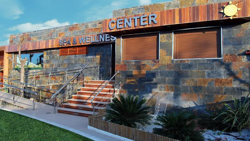 Set inland from the popular coastal resort of Peñiscola, Spa Natura Resort is set next to the Sierra de Irta Natura Park and Marine Reserve. This unusual development of residential and holiday park homes, designed and decorated in an environmentally friendly way, provides 110 level touring pitches. All pitches have electricity (6/10A) and access to water with wide, gravel roads. Amazingly, most are set on neat, artificial grass. Some shade is provided by young palms, pines and plane trees. The pitches are separated by small wooden fences and large units can be accommodated. Pitches are set between long rows of bungalows and there are very chunky elevated roofs over some. An impressive wellness centre is housed in a towering building, styled rather like a beehive.