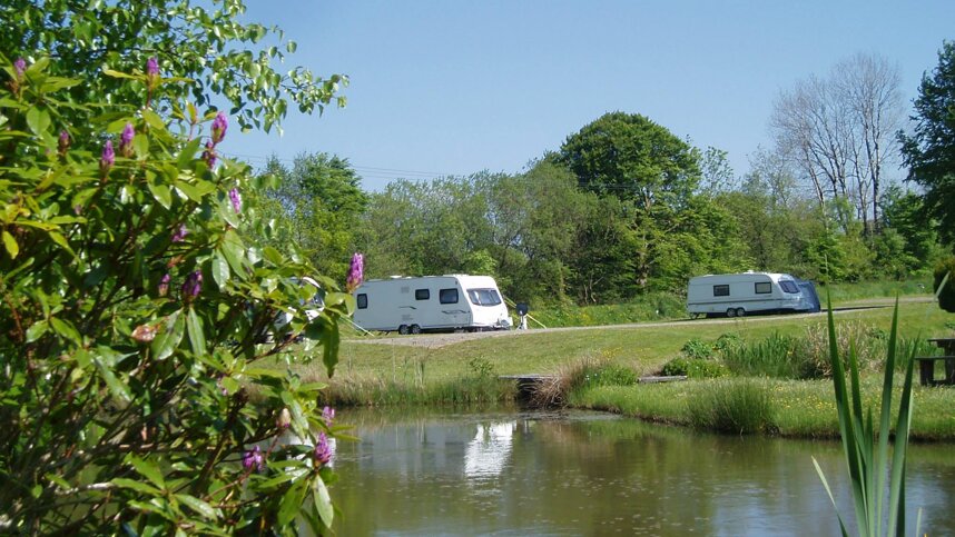 Set in 20 acres of Welsh countryside, Springwater offers a selection of fishing lakes to keep even the keenest of anglers occupied. However, it is not just anglers who will enjoy this site – it is a lovely base to enjoy the peace and tranquillity of this part of Wales. Springwater offers 40 spacious, flat pitches either on grass or 30 gravel hardstanding, all with 16A electricity and ten fully serviced pitches, plus ten tent pitches. Malcolm and Shirley Bexon are very proud of their site and welcome all visitors with a smile. This is not a site for children unless they enjoy fishing (no play areas). If you want to learn about fishing, Malcolm or Mark will be happy to help.
