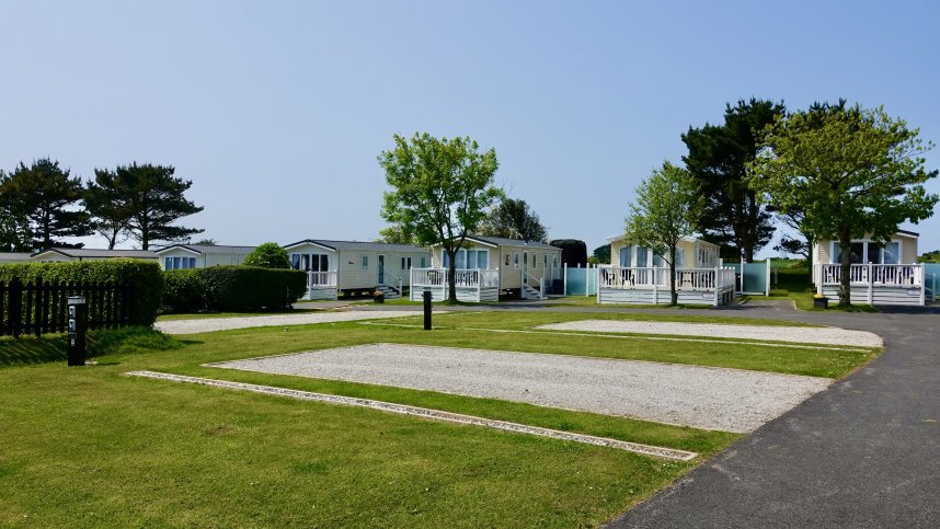 A small friendly, peaceful site, maintained to a high standard, and in a great location. The site has just 45 mobile home units and 12 touring pitches ten fully serviced; access is good, just a short distance from the A30. A modern reception with tourist information is situated by the entrance, pitches are level and generous in size and well spaced, and facilities are modern and clean. There is also a steam room, gym and children’s play area.