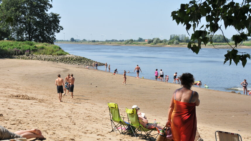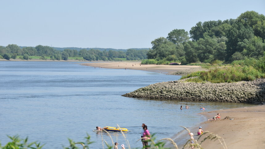 Site is 20 km. southeast of Hamburg on the southern banks of the River Elbe. Leave A250 at exit 3 Winsen West, travel northeast on L217 through Winsen and Drage. Site entrance is signed to left 4 km. northeast of Drage. Stover Strand is last campsite at end of entrance road.