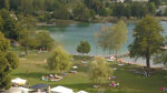 This site on the edge of the lake is owned by the Gasthof Brückler guest house, which is on the road directly opposite. Out of season, it is very quiet and its position at the end of the lake makes it a pleasant place to stay whilst visiting the area. In high season it can become crowded and less appealing. The 150 touring pitches are on level grass, well defined but rather small, with a further 50 pitches being taken up by seasonal units. There is shade to some plots. A 10A electricity supply is available, using 2-pin continental sockets. One old toilet block central to the site is adequate, clean and well maintained. On arrival register at Gasthof Bruckler. Some English is spoken.