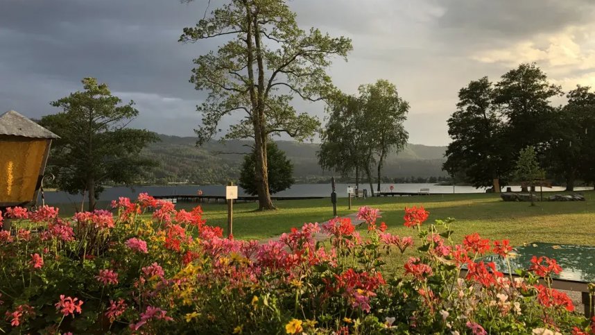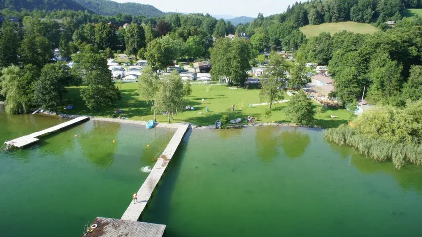 From A10 take road towards Veldon and follow signs to Keutschacher See lake. At traffic lights (by Gasthof Brückler and Strandcamping Nord), turn right and site is at end of road.