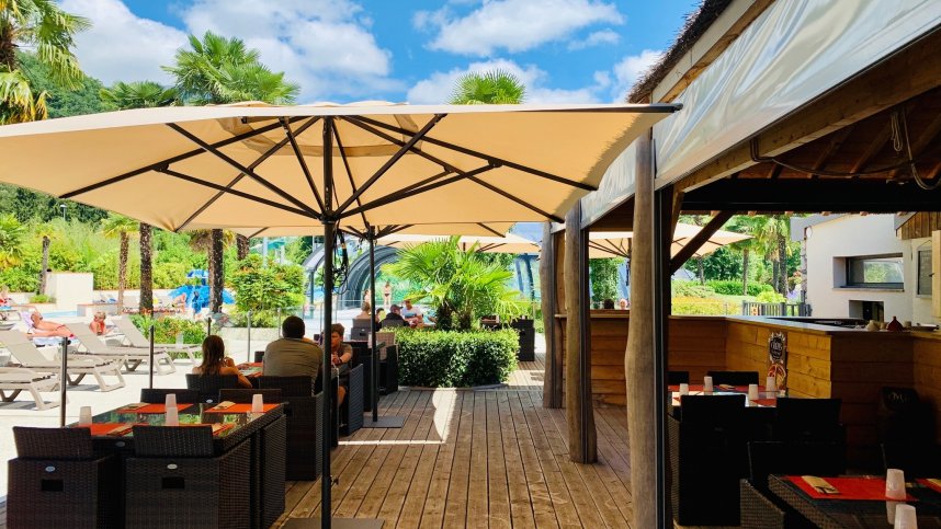 One slightly dated toilet block, the other one superb with granite washbasins and twin power showers. Accessible facilities. Bar/disco (15/6-30/9). Café, takeaway, restaurant (15/6-15/9). Bread. Swimming pool complex (15/5-15/9), heated indoor pool (all year), paddling pool, spa bath, large jacuzzi and two water slides. TV room. Good playground. Volleyball, football, boules, archery. Entertainment and activities in high season. Large meeting, eating and greeting area with retractable roof and walls. Large TV screens for major events. WiFi throughout (charged in high season).