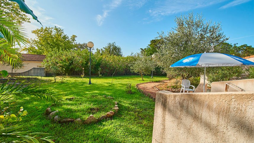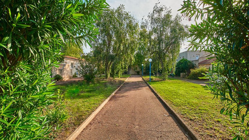 Sunêlia Residence Lisa Maria is a walled collection of 84 mini-villas set on the RN198 road. The beach is 500 m. away and accessed through a stepped tunnel under the road. This location is therefore unsuitable for those with mobility issues. A simple kidney shaped pool with loungers is provided for guests, along with a very basic play area for children, also through the tunnel. The beach is a further 400 m. walk, crossing a river bridge to reach its northern tip. Watersports and other facilities are a further 300 m. along the beach. A car is essential for sightseeing in the region as there are few supporting facilities at the Residence.