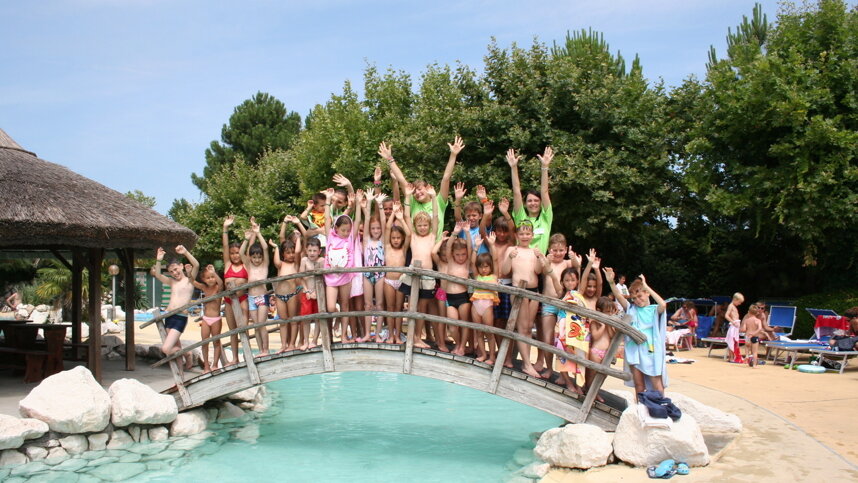 All toilet blocks are of a very high standard. British and squat style WCs. Accessible facilities, Baby room. Large supermarket, two restaurants, bar, pizzeria, takeaway, heated swimming pools (all season). Thermal Oasis (charged). Fitness and beauty centre. Several playgrounds and miniclub. Gym. Tennis. Floodlit sports area. Minigolf. Riding. Bicycle hire. Entertainment and excursions (high season). ‘Disco-pub’. ATM. WiFi on part of site (charged). Free transport to beach. Torches needed in some areas. Archery. Bowls. Dogs are only accepted from 12/5-19/6 and 28/8-18/9.