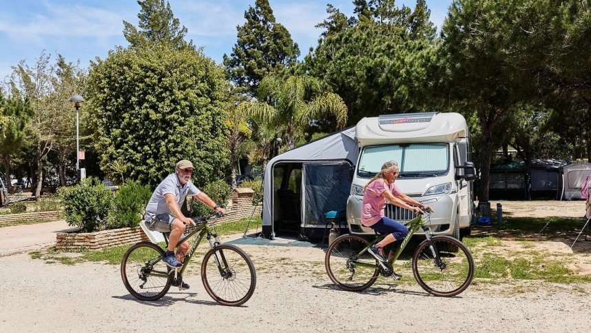 This site lies within the Parque Natural Bahia de Las Dunas and is adjacent to the long and gently sloping golden sands of Puntilla beach. This is a pleasant and peaceful site (though very busy in August) with some 539 separate marked pitches, 260 for touring units, with much natural shade and ample electrical connections (10A). Motorhomes park in an area called the Oasis which is very pretty. Tent and caravan pitches, under mature trees, are terraced and separated by low walls. This is a spacious site with a tranquil setting and it is popular with people who wish to ‘winter over’. A 2 km. unshaded walk takes you into the bustling heart of Puerto Santa Maria.
