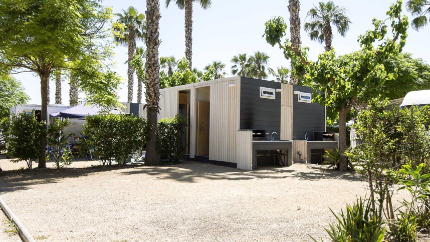 The high-quality sanitary blocks (two heated) are modern and tiled. Private bathrooms to rent. Accessible facilities, Laundry facilities. Motorhome services. Fridge hire. Gas supplies. Supermarket, boutique, bars, restaurant and takeaway. Bakery. Wellness area. Swimming pool. Tennis. Pétanque. Bicycle hire. Minigolf. Playground. Sports zone. Club room with bar. Miniclub. Entertainment programme. Fishing. WiFi throughout (code).