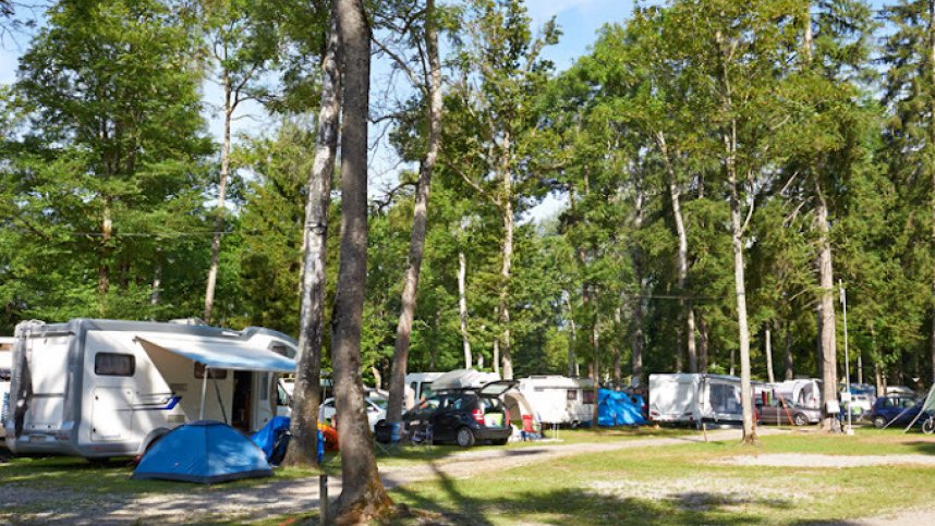 This Swiss Touring Club site is particularly suited to families with children. From the terrace of the self-service restaurant and shop there is a view of the small swimming pool and the large grass area that leads to the gently shelving waters of the lake and a small wooden jetty. The site has 860 pitches (140 for touring units) making it very popular and busy, especially at weekends and holidays. The touring pitches are divided into three sections; one with large service facilities, an open grass area and another among the pine trees with little grass. This site is run in an environmentally sensitive manner and is located in a protected nature area, a habitat for beavers, wild boar and foxes.