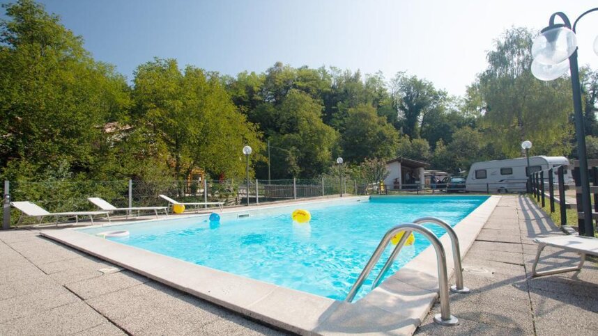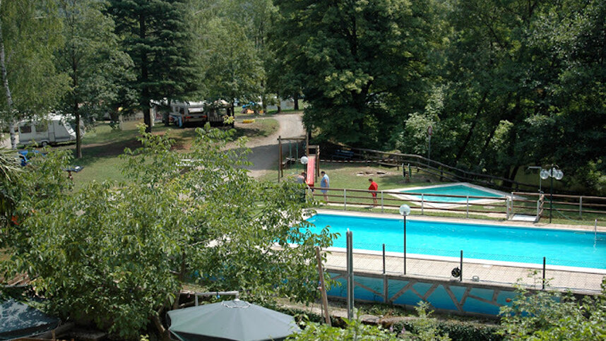 Meride is a small village in the extreme south of Switzerland close to the Italian border and not far from the A2/N2 motorway. The site is on a slight slope 1 km. from the village. There is space for 65 small touring units with 13A electricity connections available for all (long leads required). The pitches are not numbered or marked out but are level on terraces, mostly among tall trees. When the site is busy, units could be crowded, it is therefore requested that towing cars are parked outside. This site would make a good stopover, with a refreshing dip in the pool welcome at the end of a long journey.