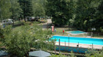 A river runs across the top of the site and along one side, with a natural pond. Reception and the bar are reached by crossing a small wooden bridge. A gravel road runs from the entrance to the top of the site, and on the top level is a large, open field for tents, with electricity and water points. Apart from a little traffic noise from the road running past, it is a tranquil site ideal when spending a few days exploring the area. The road from the motorway is narrow in places, and care will be needed at the site entrance.