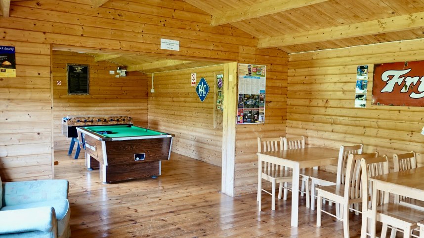 Modern fully equipped toilet block. Very smart en-suite family room doubles as an accessible sanitary facility. Laundry facilities. Reception with shop area. Games room and tourist information. Play area with small trampoline. Netball. Picnic tables. Woodland walk. Local takeaway delivery. WiFi throughout (charged). Dogs are not accepted. Cottages and mobile homes to rent.