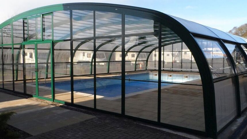 A single toilet block provides showers, washbasins & wc’s. Laundry. Chemical toilet point. Accessible sanitary facilities. Bar. Restaurant. Takeaway. Children’s play area. TV room. Games room. Indoor swimming pool. Pets allowed. BBQ’s Allowed.