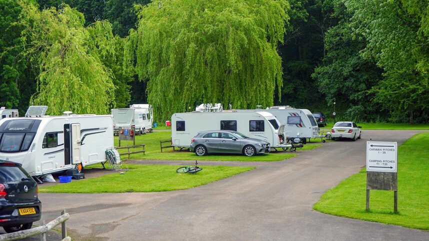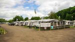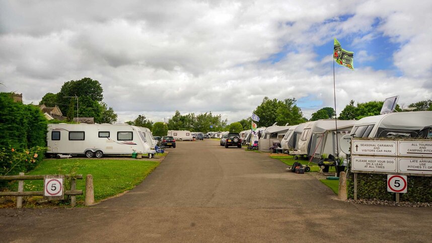 This family run park is located in a village four miles from Monmouth. The Bridge Caravan Park was established in 1979, being a working farm until a few years ago. Over half the park is taken up by seasonal long stay pitches. The touring area is to one side, edged by the river at a lower level. Neat, level grass accessed by a circular tarmac roadway provides 33 pitches for caravans and motorhomes, with 10A electricity and 16 hardstandings. A further 20 places for tents are available, all with 5A electricity. In busy periods the site may be cramped with little room between units, yet a friendly atmosphere prevails. Still in the hands of the Holmes family, it provides a rural site bordered by the River Trothy and woodland on one side, and by the farm buildings and church on the other.