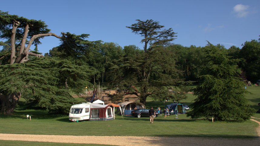 The 9-acre camping field, a little distant, lies in a sheltered, sloping dry valley containing superb tree specimens – notably cedars and walnuts. a large play area splits the field. In total there are 125 spacious pitches, 90 with 10 amp electricity and some in wooded glades.