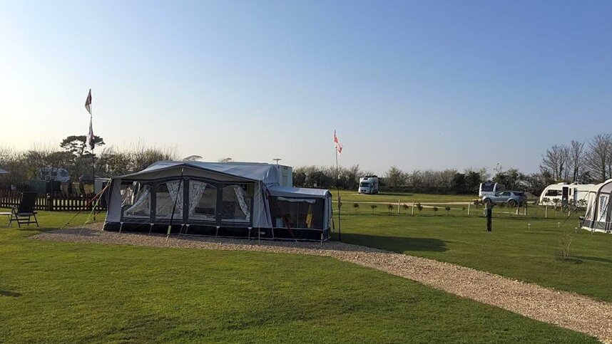The adults-only site has 30 touring pitches with plenty of space between each pitch. The minimal on-site facilities have everything you need for a relaxing break away. This includes A sanitary block, which is suitable for people with reduced mobility. There is also a laundry room, a food preparation area and a separate washing-up sink. Adjacent to the facilities block, there is also a chemical waste disposal point for tourers.