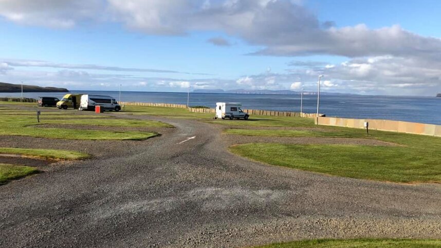 Thurso Bay Caravan & Camping Park is a lovely 4.5-acre coastal site providing the best of both worlds: stunning rural coastal views with easy access to amenities in town. It overlooks Thurso Bay and the Orkney Isles can be seen in the distance. The North Link Ferry Terminal at Scrabster Harbour is only 3km away. The Blue Door Coffee Shop & Diner, located on-site, is Thurso's indie burger joint, coffee shop, and ice cream parlour all rolled into one. It serves original beef burgers, hot dogs, fish 'n fries as well as its own artisan ice cream and specialty milk shakes and coffee. Take-away available (great food and the great outdoors from the comfort of your tent, caravan, or motorhome). The site has 66 grass or hardstanding pitches and most have electric hook-up point.