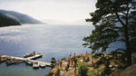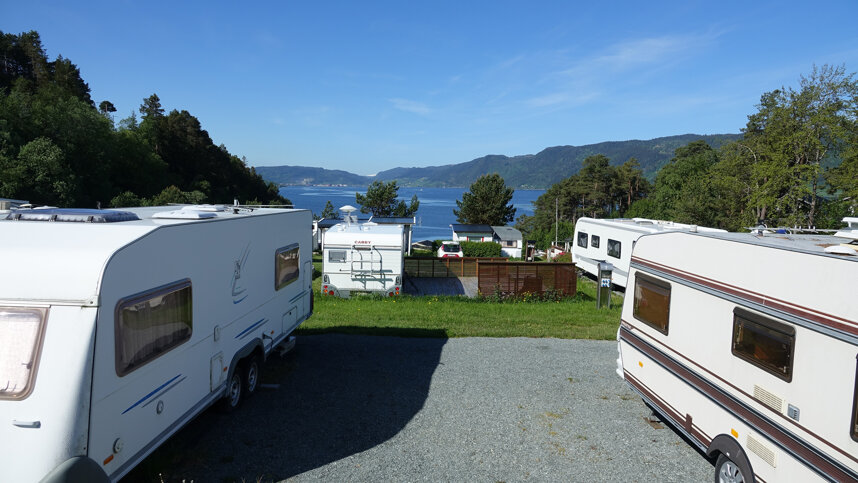 The 30 touring pitches with fjord views (some slightly sloping), all with electricity connections (10/16A), are on an open grassy field at the top of the site or on a series of terraces below. These run down to the small sandy beach, easily accessed via a well-designed gravel service road. To one side, on a wooded bluff at the top of the site, are 19 cabins (open all year), many in the traditional style. The smart reception complex also houses a small shop, a licensed café, a lounge area, and a terrace overlooking the entire panorama.