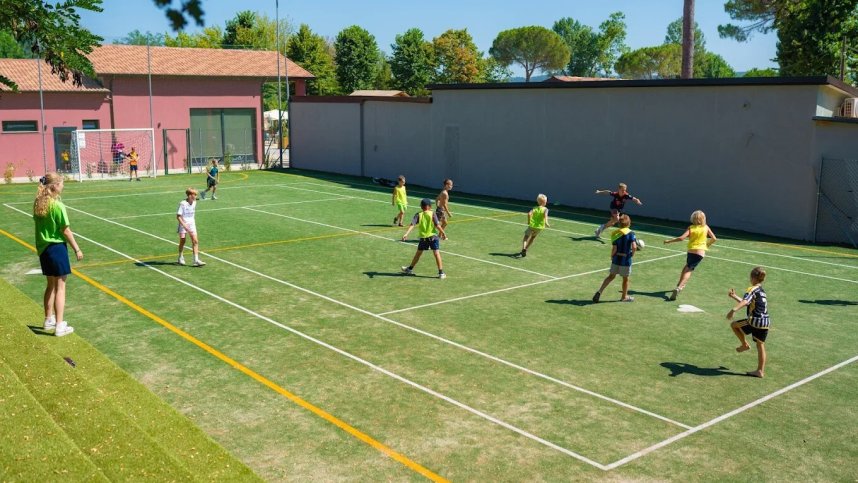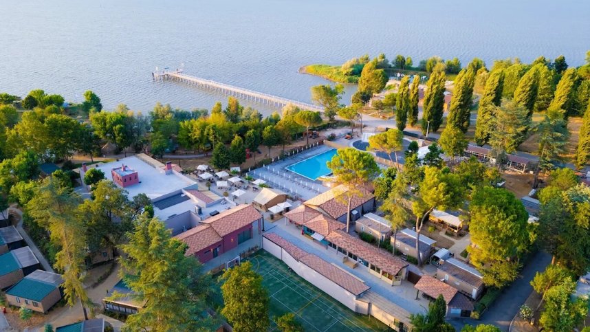 The resort boasts a large swimming pool complex with multiple slides, a dedicated children's pool, a toddler pool, and a jacuzzi for adults. There's also a "lagoon" with water features, ideal for younger children. Sun loungers and parasols are available around the pool areas. Directly on Lake Trasimeno, the campsite boasts two beaches where Guests can relax by the lake or engage in various water sports such as windsurfing, fishing, motorboating, sailing, and pedal boating. There's also a private marina with space for ten boats. Other on-site facilities include a multi-sports pitch for playing football, tennis (by reservation at certain times), and volleyball.