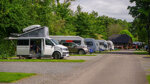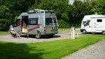 The toilet block is of an excellent standard with a digital lock system. It includes washbasins in cubicles, Accessible facilities, baby and toddler bathroom. Laundry. Good motorhome service point. Chemical toilet point. Calor gas is available. Defibrillator. The National Trust’s Tredegar House visitors’ centre with tea rooms, gift shop and craft workshops (open Easter-Sept) is close by. Adventure play area in the park. Wi-Fi poor, charged. Tents accepted. No late-night arrivals area. Twin axle caravans accepted. Pets allowed. Dog walk. BBQs allowed gas, charcoal & electric. TV reception good. Bus stop 800 metres. Asda 0.5 miles. Train station 2 miles. Earliest arrival time 1:00pm. Maximum outfit length 8.5 metres.