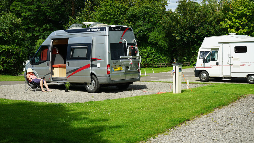 The site itself is set within the gardens and park of Tredegar House, a 17th-century house and country park, which is open to the public to discover what life was like ‘above and below stairs’. The park entrance gates are locked at dusk so contact the site reception for details of latest arrival times. Some road noise may be expected at times, but otherwise, this is an excellent site.