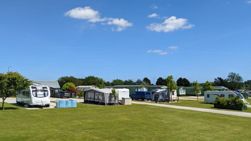 This quiet, small but spacious site is located in an Area of Outstanding Natural Beauty, and easily accessed from the B3359. It lies a little back from the coast, just over three miles from the lively port of Looe and the pretty fishing village of Polperro. Despite the name, there is no farm. On your right as you drive in, and quite attractively arranged amongst herbaceous shrubs, are caravan holiday homes (15 privately owned, some let by the park). The touring area has 30 pitches, six with hardstanding and all with 16A Europlug, in addition to some holiday homes and a play area. The coastal path is nearby and sandy beaches are within easy reach.