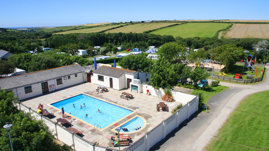 Treloy is a family owned and run park just three miles from the wonderful beaches around Newquay, yet peacefully located away from the crowds. There are 197 large pitches (120-190 sq.m), some slightly sloping, all with 16A electricity (new system) and 30 fully serviced; 130 are used for touring units on a site with a relaxed family atmosphere. There are some concrete hardstandings for caravans which are attractively interspersed with shrubs and form a pleasant landscape feature. Elsewhere, hydrangea edge the roads around the more open pitches and the new trees have grown well.
