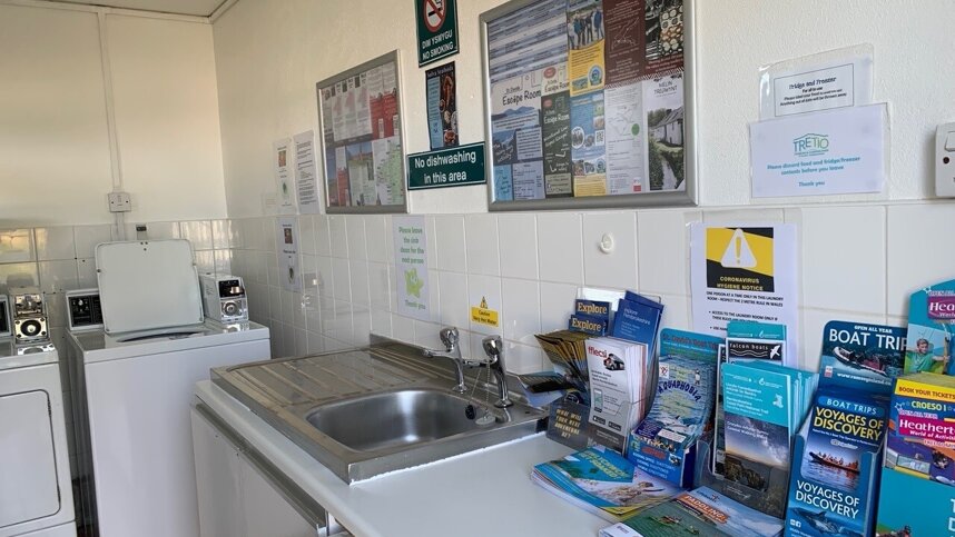One sanitary block with five showers, accessible washroom with large shower, toilet and washbasin, Male and female facilities, each with three basins and three toilets. Accessible facilities, Three washing machines/dryers. Free WiFi. Bookable shuttle service to the Peninsula including the beaches, at cost. Pitch & putt 9-hole golf course - Bring your own clubs/ balls.