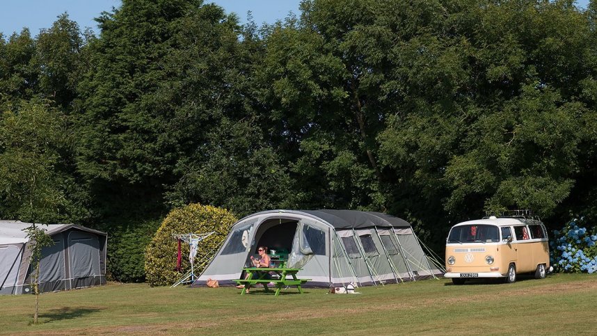 The site has been in the hands of the Goldring family for four generations and they have built up a true park adorned with colourful flowers and shrubs as well as cedar, laburnum, palm and sycamore trees. These enclose the camping areas, are there for all to enjoy and create a peaceful, relaxing atmosphere. Both the north and south coasts are easily reached, with sandy beaches, coves and coastal trails in abundance, as well as the large, better known attractions: The Lizard, St Michael’s Mount and Land’s end.