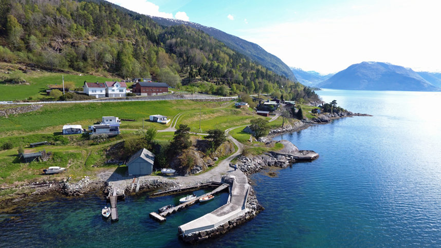 Located in the district of Vik on the south shore of Sognefjord, 4 km. from the small port of Vangsnes, Tveit Camping is part of a small working farm and it is a charming neat site. Reception and a kiosk open most of the day in high season and there is a phone to summon assistance at any time. Three terraces with wonderful views of the fjord provide 35 pitches with 30 electricity connections (10A) and there are also site owned cabins. On the campsite, you will find a restored Iron Age burial mound dating from 350-550 AD, whilst the statue of ‘Fritjov the Intrepid’ towers over the landscape at Vangsnes.