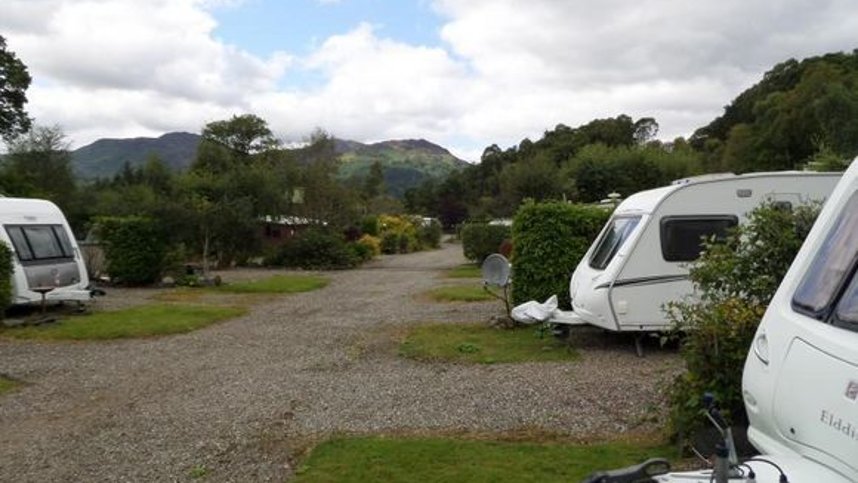 The lowest level is the entrance where there is a late arrivals area and visitor car park. You will be escorted to your pitch. There are just 12 level touring pitches on gravel with grass bays between them, all with 10A electricity hook-ups.