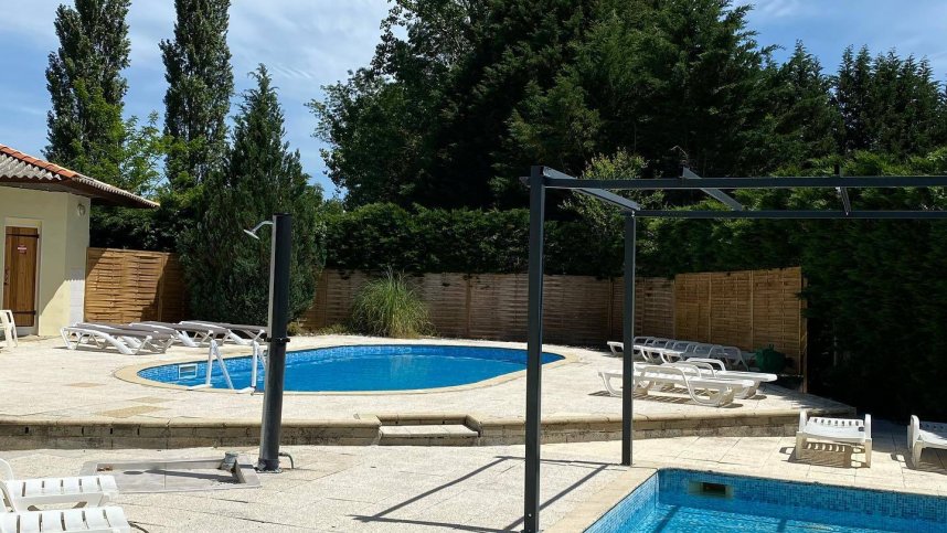 Small sanitary block. Accessible facilities. Bar. Small restaurant (18.00-20.00, pre-order). Unheated swimming pool (June-Sept). Fishing (free for campers). Play area and large grassed area for ball games.