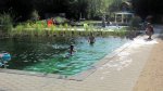 Sanitary facilities are provided in the reception building where good amenities include British style toilets, free hot showers and washbasins in cabins. Accessible Facilities. A second, older block to one side has toilets and a laundry. Motorhome services. Bar/restaurant, small shop for basics and a takeaway (all 1/3-31/12) and a library. Internet. Swimming pool (1/6-31/8). Basic playground. Playing field. Canoe hire. Animal farm. Some entertainment organised. Torch useful.