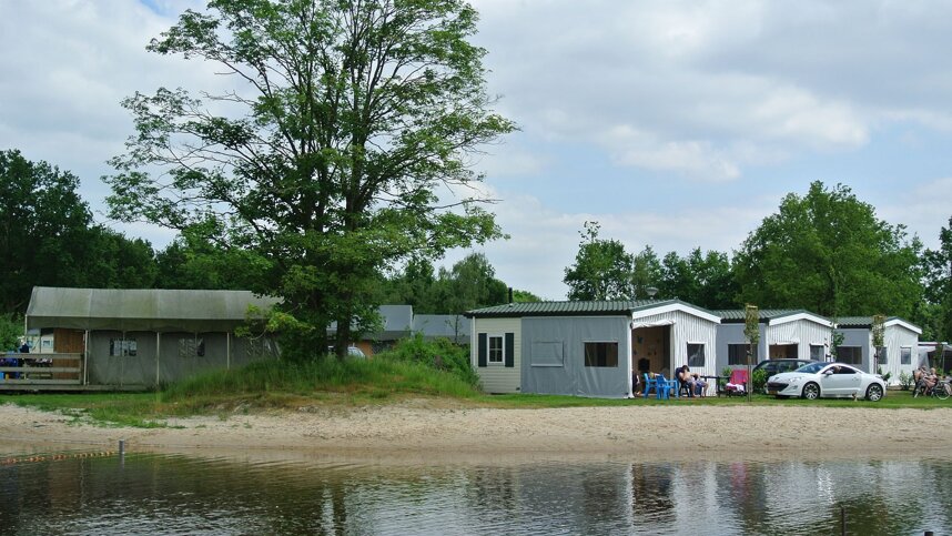 Arriving at Het Stoetenslagh and passing reception, you reach the pride of the campsite; a large natural lake with several little beaches. Many hours can be spent swimming, canoeing or sailing a dinghy here. There are 341 spacious grass touring pitches (120-140 sq.m) divided between several fields and arranged around clean sanitary buildings. Each field also has a small volleyball area and climbing frames. You may choose between nature pitches, standard pitches or serviced pitches with water, drainage, 10A electricity and cable connection. There are climbing frames for children, much space for playing, a children’s club and, particularly popular with little ones, a small animal farm.
