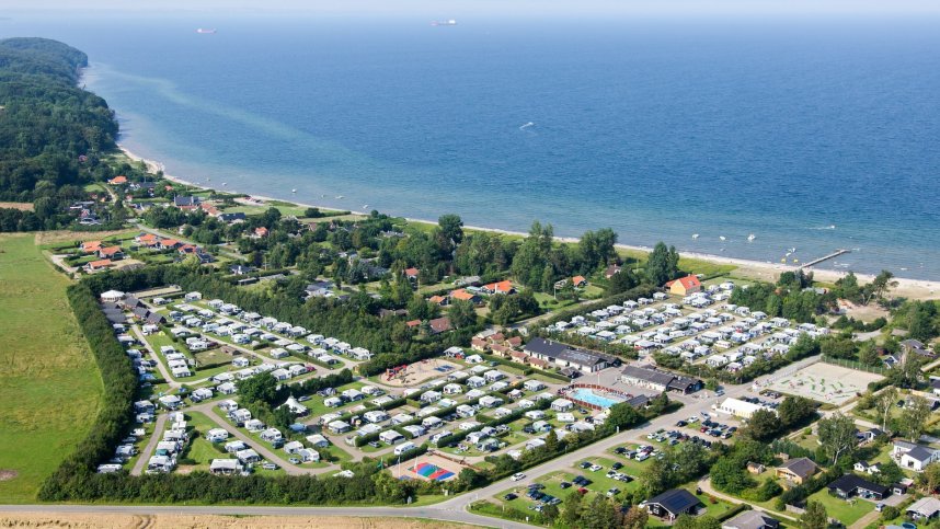 Vejlby Fed Camping is an attractive and well cared for site, close to the beach. It is also close to Middelfart and not far from Odense, the birthplace of Hans Christian Andersen. The site is on level, grassy ground with gravel access roads and provides 243 numbered pitches on several large fields. Some of the spacious, level pitches are separated by low bushes, others have no separation. There are views of the sea from the fully serviced pitches. With 145 places for touring units, seasonal guests take up the balance. The owners tell us that the beach is child-friendly with shallow water for about 30 m. out to sea.