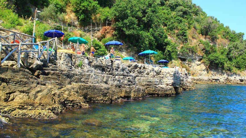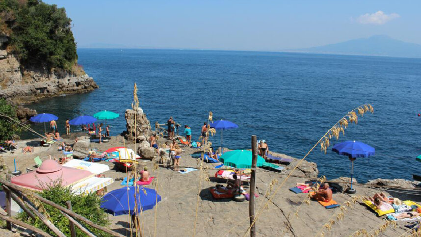 From the A3 (Naples-Salerno) follow signs to Pensisola Sorrentina. Exit at Castellammare di Stabia and on through Sorrento. Then take SS145 towards Massa Lubrense, running along Via Capo. Site is 1.5 km. past Sorrento (the best time to travel this busy coastline is 13.00-15.00 during siesta).
