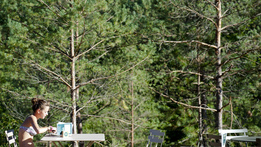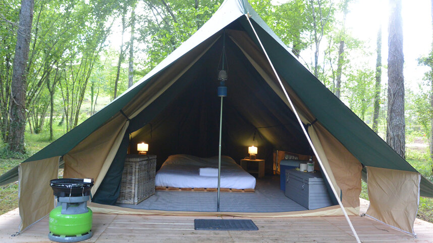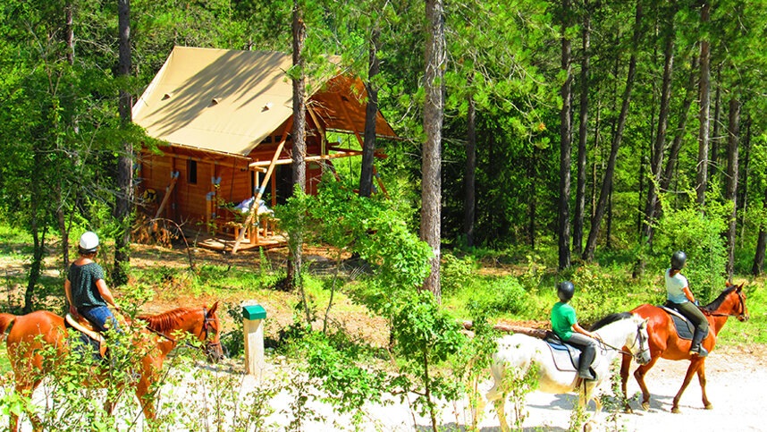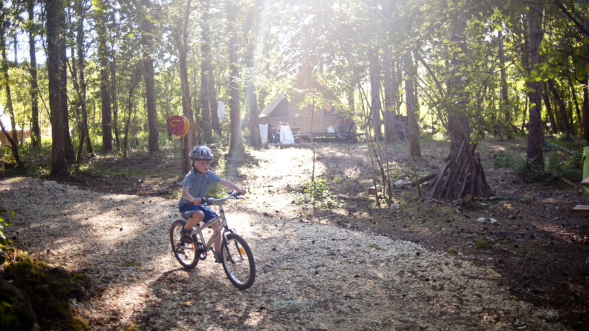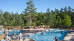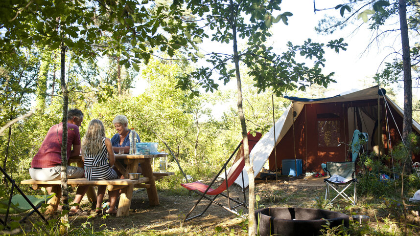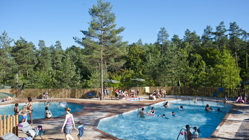 One wooden sanitary block has accessible facilities. Three smaller blocks in the tent area. Covered dishwashing sinks. Washing machine and dryers. Fridge hire. Fresh bread daily and grocery corner. Bar/restaurant and pizzeria (July/Aug, weekends and public holidays). Heated swimming and paddling pools (14/4-18/9. Only electric barbecues allowed). Large central lodge with wood-burning fire and communal area. Children’s club (5-7/8-12 yrs). Forest skills and nature activities. Play area. Pétanque. Evening entertainment. Mountain bike hire. Internet in reception.