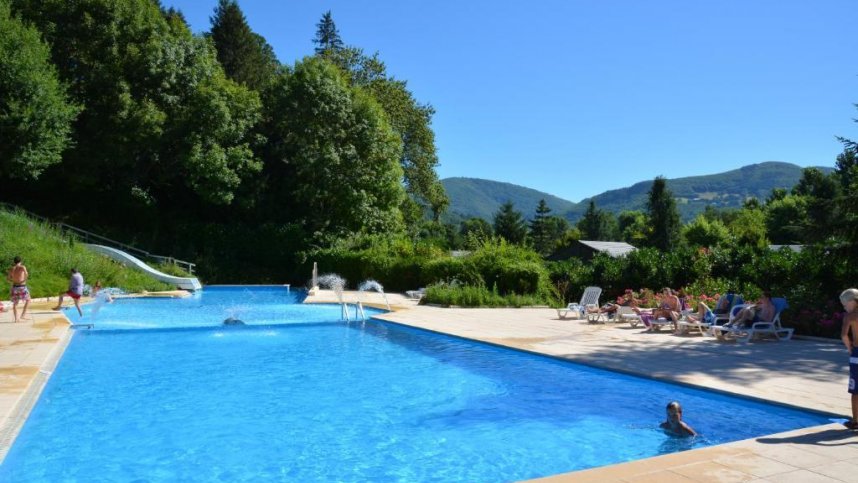 The swimming pools have fountains, a toboggan and sun beds either on grass or the tiled surrounds. The Lot river runs alongside the site where you can fish or canoe and swimming may be possible. The old town of Saint Geniez-d’Olt, just 500 m. away, can be reached by a riverside path. Here you’ll find plenty of bars and restaurants along with small clothes shops and regional products.