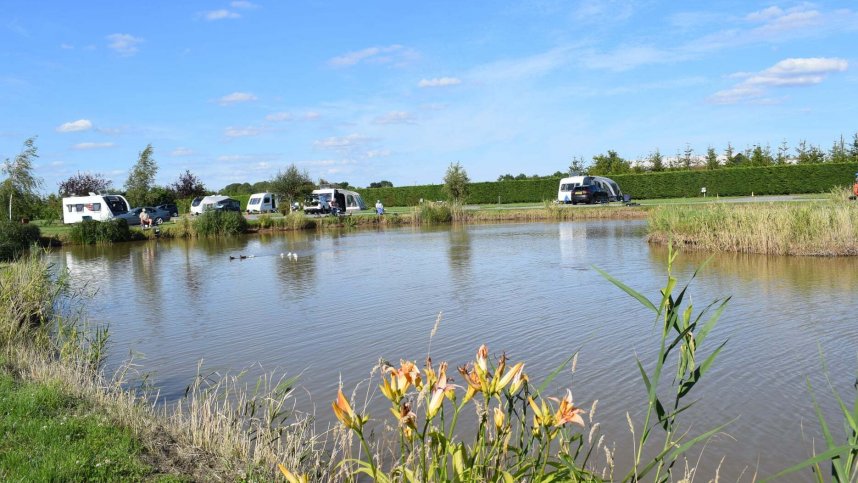 Based around two small fishing lakes, this unusual, well maintained adults only park consists of two Caravan Club CLs, each with its own entrance, together with a number of public licence pitches and four wooden lodges, two of which are for hire. Reception is via the right-hand entrance. There are a total of 24 pitches, all with metered electricity connections (16A, cards £1 and £5), 12 on hardstandings and 12 on grass. Awnings and groundsheets are not allowed on the grass. The park is particularly popular with anglers, but there is plenty to do and see in the area, with easy access to several major towns.