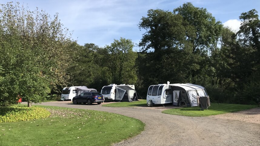 From M5 exit 25 take A358 (signed Minehead) round Taunton for 4 miles, then at Staplegrove onto B3227 for 11.5 miles to Wiveliscombe, where straight over at lights to Waterrow (still on B3227). Park is on left shortly after the Rock Inn. Do not use sat nav for this site as it takes you on roads unsuitable for caravans.