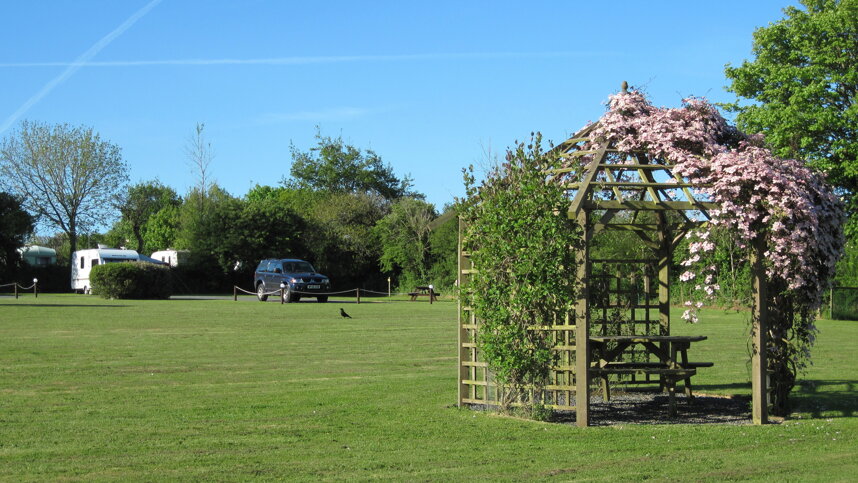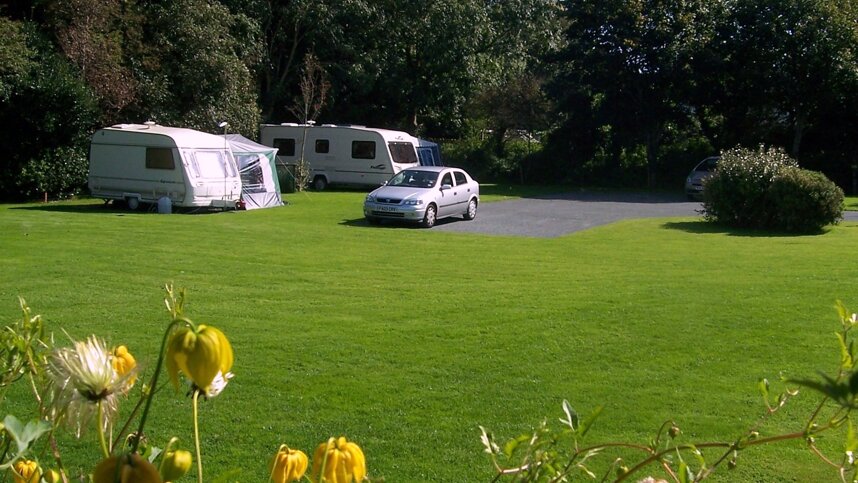 Wayfarers is a neat and tidy, garden-like park reserved for adults only, and only accepts visitors with a reservation. Sheltered by perimeter trees and consisting of two finely mown fields, interspersed with shrubs and palm-like trees, 25 pitches are available for caravans (up to 24 ft. single axle), and motorhomes up to 21 ft. There is a separate area for tents, and three holiday caravans are available to rent. All have 16A electricity, with hardstanding available on 23. Should you enjoy walking, you can follow the River Hayle down to Saint Erth. There are many more suggestions with maps and a good display of leaflets in the information room, including a star chart.