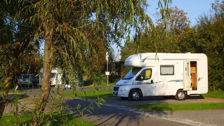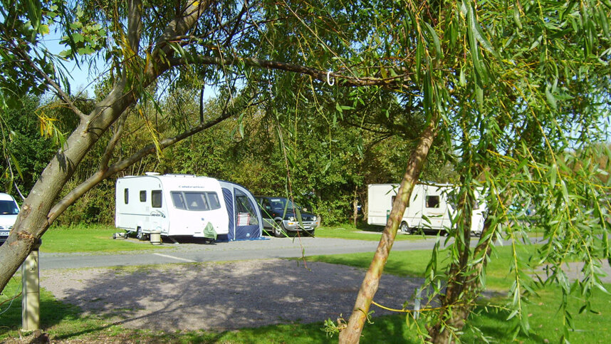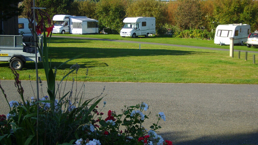 The toilet block provides toilets, showers and wash basins. Accessible sanitary facilities. Children’s facility. Laundry. Dish washing area. Gas sales. Motorhome service point. Chemical toilet point. Children’s play area. BBQs allowed, charcoal, gas and electric. TV reception good. Wi-Fi fair,charged. Defibrillator. No tents allowed. Information room. Pets allowed. Dog walk adjacent. Twin axle caravans accepted. Late-night arrivals area. Maximum outfit length 9 metres. Bus stop 800 metres. Train station 4 miles. Morrisons 3 miles. Earliest time of arrival 12 noon.