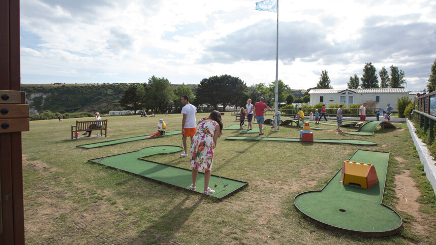 One sanitary unit is not far from reception. Accessible shower and a suite (with shower). A second suite with a hip bath/shower is at the lower block with a similar facility to serve as a baby/family room. Motorhome services. Small shop at reception. Playground. At the holiday home park: launderette, hairdresser and second larger shop. The Culver Club. Snack bars. Swimming pool (18x18 m, Whitsun-end Aug). Indoor fun pool and soft play zone (under 8s). Most facilities are open Mar-Oct. Free WiFi on the main site. Full programme of activities and entertainment for all ages. Mini golf, Fully equipped tents to rent.