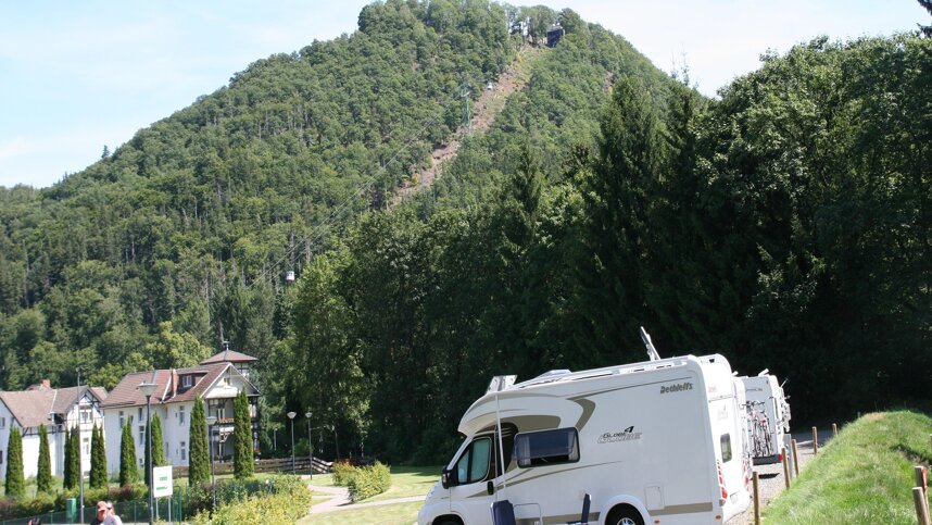 This site accepts only motorhomes. There are no toilet facilities, only showers, so units must be self-contained. It is open all year round and welcomes 70 units on its hard surface, but between May and October numbers are increased to 80, 50 with electricity hook-ups. It is a verdant site with abundant trees (but little shade) and units are arranged around an attractive pond. It is popular with visitors to Bad Harzburg’s thermal spa, Harz National Park and the cable-car at Castle Mountain. There are some good walks direct from the site.