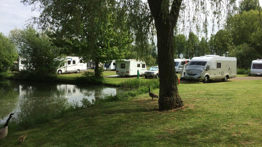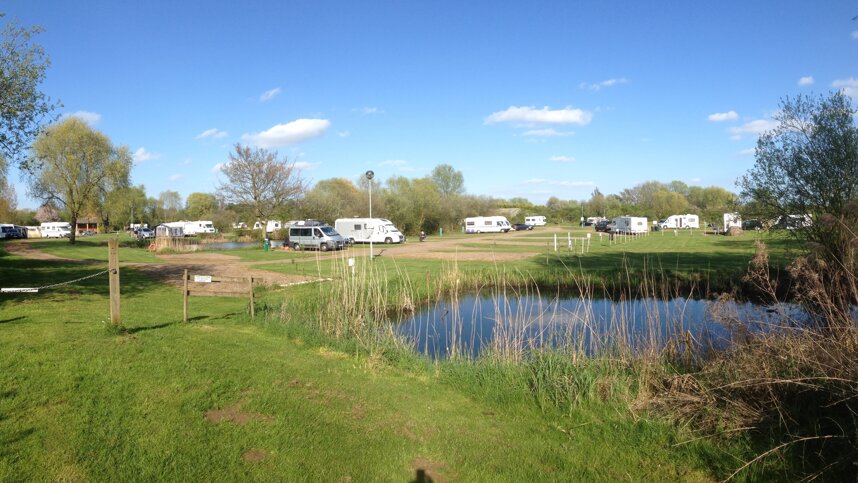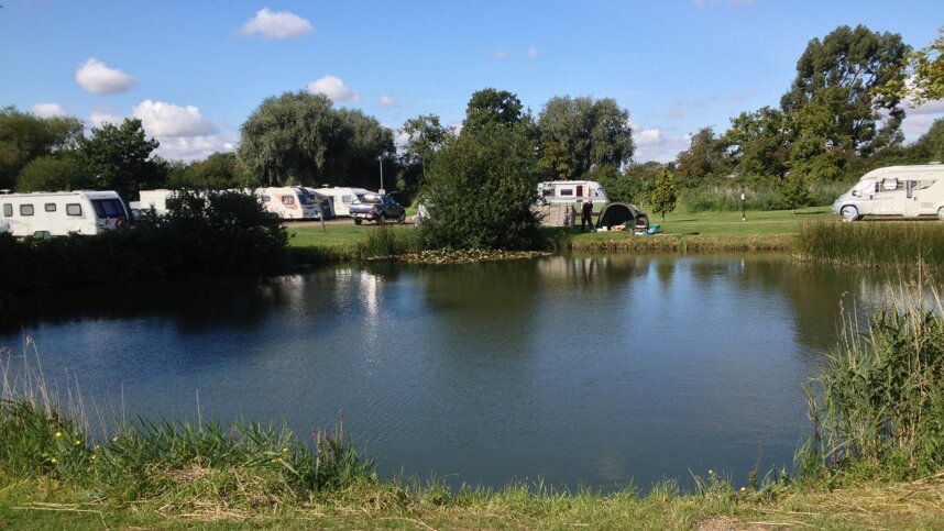 Wyton Lakes is a family run, adults only park with four well stocked fishing lakes, very close to the River Great Ouse, between Huntingdon and Saint Ives. There are about 80 level pitches of medium size with 64 for caravans and motorhomes and 20 for tents. The tent pitches are on grass some with electricity. The other pitches are mainly on hardstanding with gravel for awnings and all have 16A electricity and a water tap. Most of the pitches border the lakes making fishing possible from the pitch. Well placed as a centre for touring, the park has easy access for large outfits.