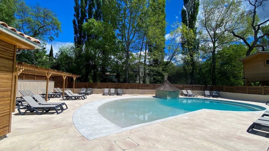 Previously known as Domaine des Grands Prés, Camping Domaine Provençal is situated alongside a footpath on the Jarbon, this small former municipal site has been transformed by the new owner, Armelle Godefroy-Colasse, since she took over in 2009. With private access to a footpath, it is just a few minutes from the centre of Dieulefit, yet the site is quiet and feels quite rural. Of the 83 open, flat pitches, 27 are for touring, with mature trees providing shade. Site and pitches have easy access for larger outfits. An area for the fascinating yurts, two tepees and various wood chalets with 57 to hire, has been kept to one side of the site, with tourers and tents taking up a central area closer to reception, the main toilet block and the pool.